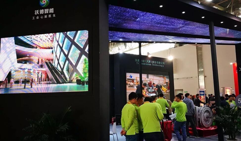 第二,沃德现场放置了两台能够让用户亲身体验的两台展机,一台展机是以电驱动的马达,现场数据实时采集,同时通过大数据的处理,即刻让大家看到设备的运行状态。