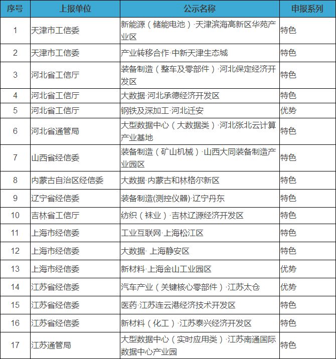 注:申报系列中的“优势”是指“规模效益突出的优势产业示范基地”,“特色”是指“专业化细分领域竞争力强的特色产业示范基地”。